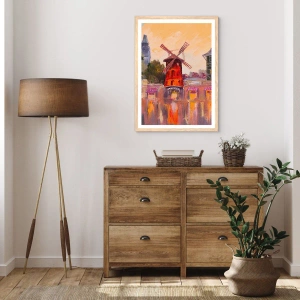 Plakat i ramme af lyst egetræ - Parisiske ikoner - Moulin Rouge - 61x91 cm