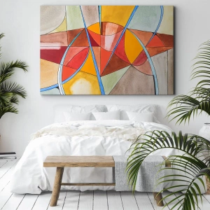 Lærredet er spændt op over rammen. Siderne og kanterne trykkes for at danne en fortsættelse af billedet. Maleriet er klar til at blive hængt op på væggen. Hvert produkt har en bøjle, der er fastgjort til rammen, og et samlesæt (skrue + dyvel).