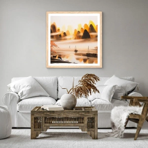 Plakat i ramme af lyst egetræ - Længere væk end det fjerne Østen - 30x30 cm