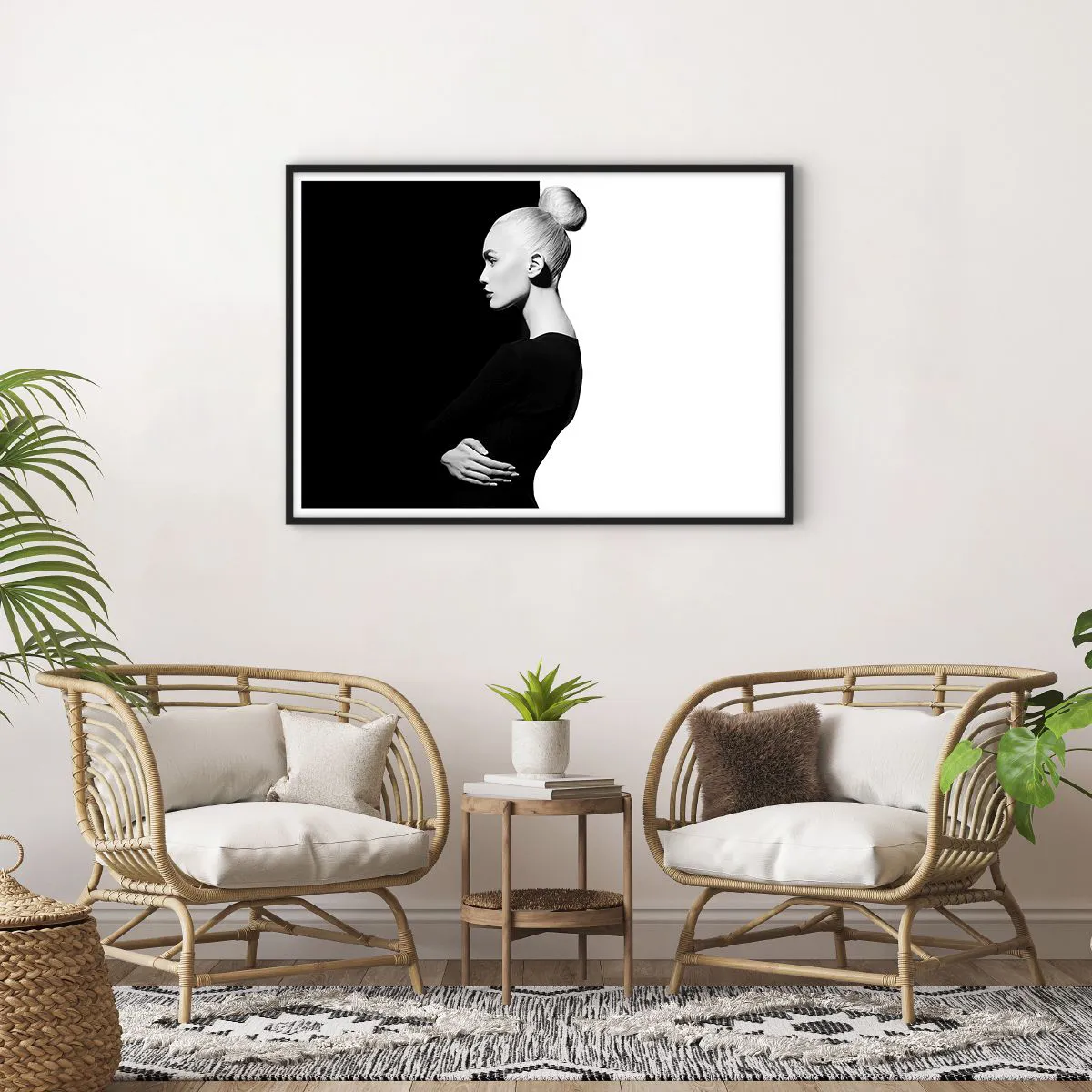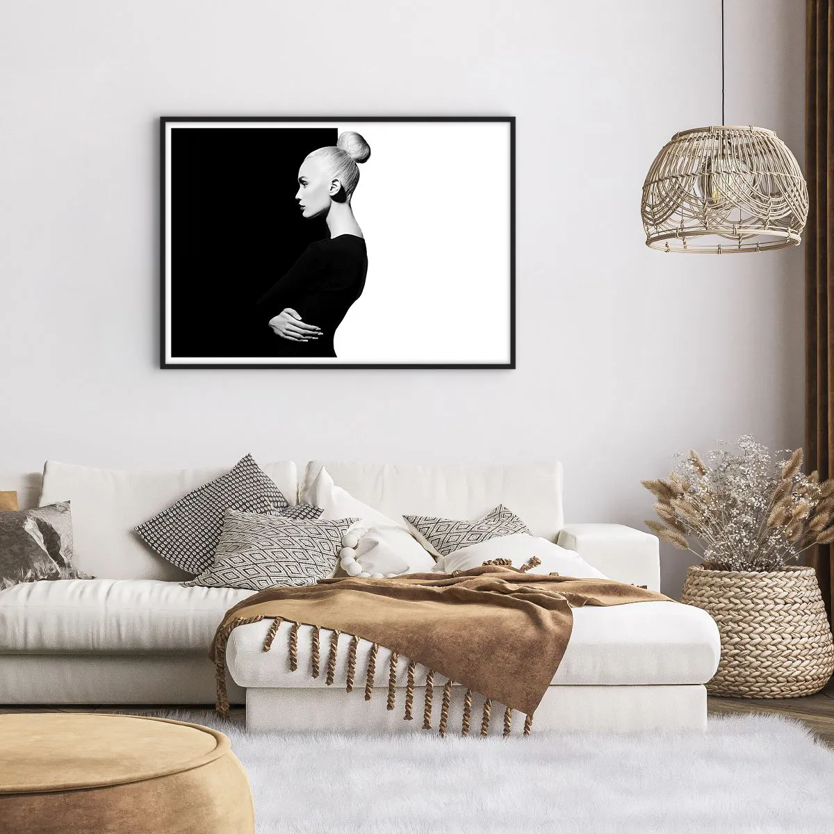 Plakat i sort ramme - Blot en kvinde - 100x70 cm