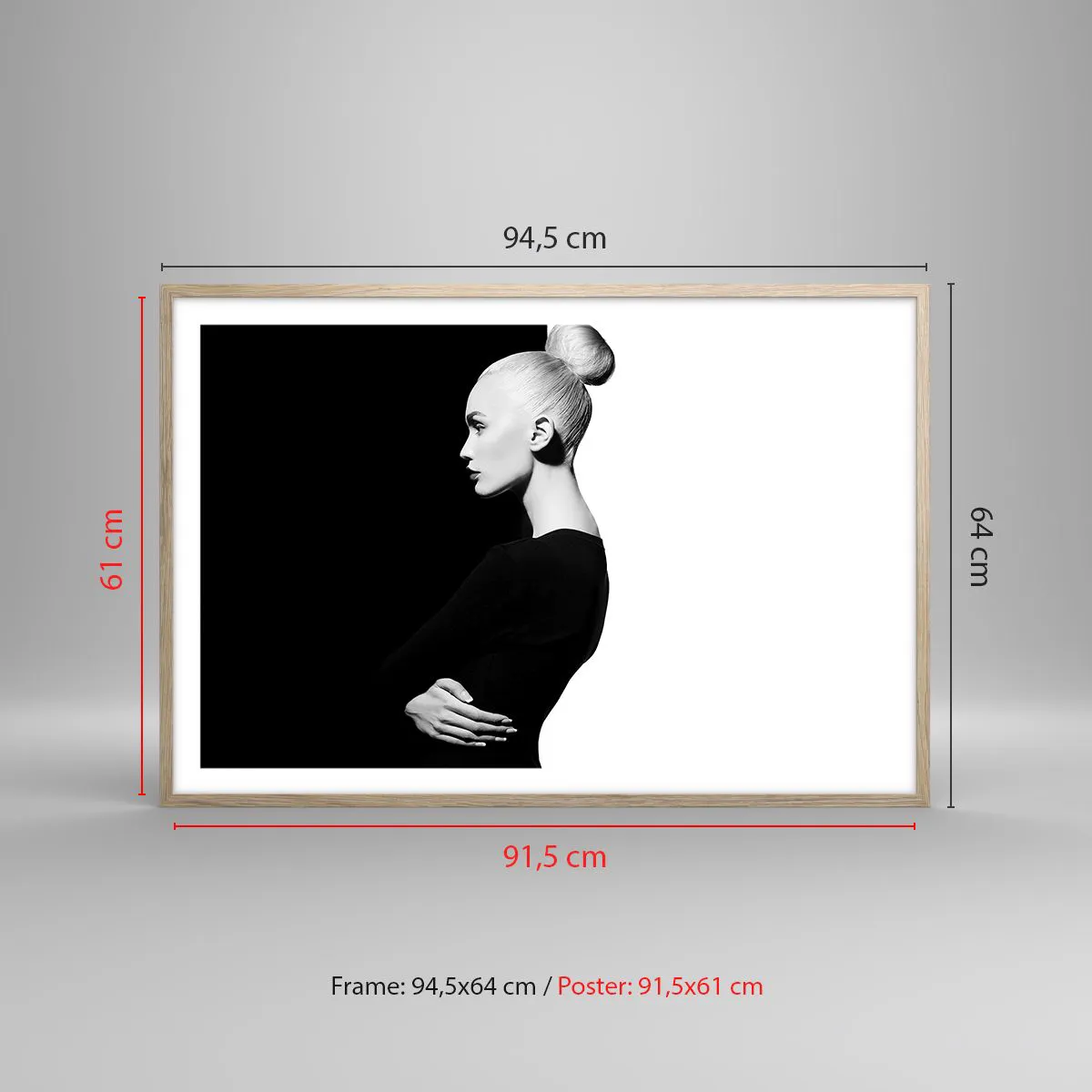 Plakat i ramme af lyst egetræ - Blot en kvinde - 91x61 cm