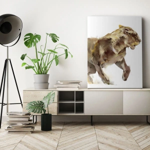 Lærredstryk - Billede på lærred - En løbende løvinde i en kunstnerisk fortolkning - 70x50cm - Vild ynde - Moderne vægdekoration til stue og soveværelse ARTTOR