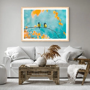 Plakat i ramme af lyst egetræ - Sladder om fugle - 30x30 cm