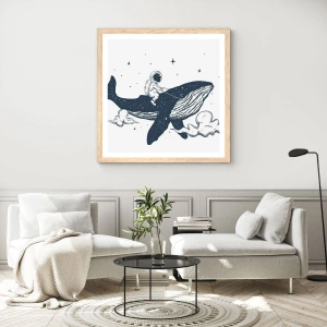 Plakat i ramme af lyst egetræ - Et kosmisk eventyr - 40x40 cm