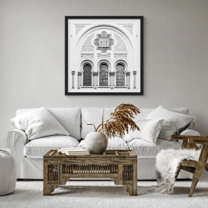 Plakat i sort ramme - Arkitektoniske detaljer i neo-gotisk stil, sort og hvid - 50x70cm - På grænsen mellem kulturer - Moderne vægdekoration til stue og soveværelse ARTTOR