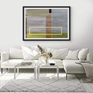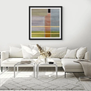 Plakat i sort ramme - Geometrisk abstraktion i dæmpede farver - 50x70cm - Lige og rolig - Moderne vægdekoration til stue og soveværelse ARTTOR