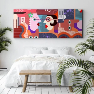Lærredstryk - Billede på lærred - Abstrakte figurer i levende farver - 70x50cm - Øje mod øje - Moderne vægdekoration til stue og soveværelse ARTTOR
