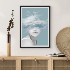 Plakat i sort ramme - Med hovedet i skyerne - 70x50 cm
