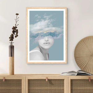Plakat i ramme af lyst egetræ - Med hovedet i skyerne - 60x60 cm