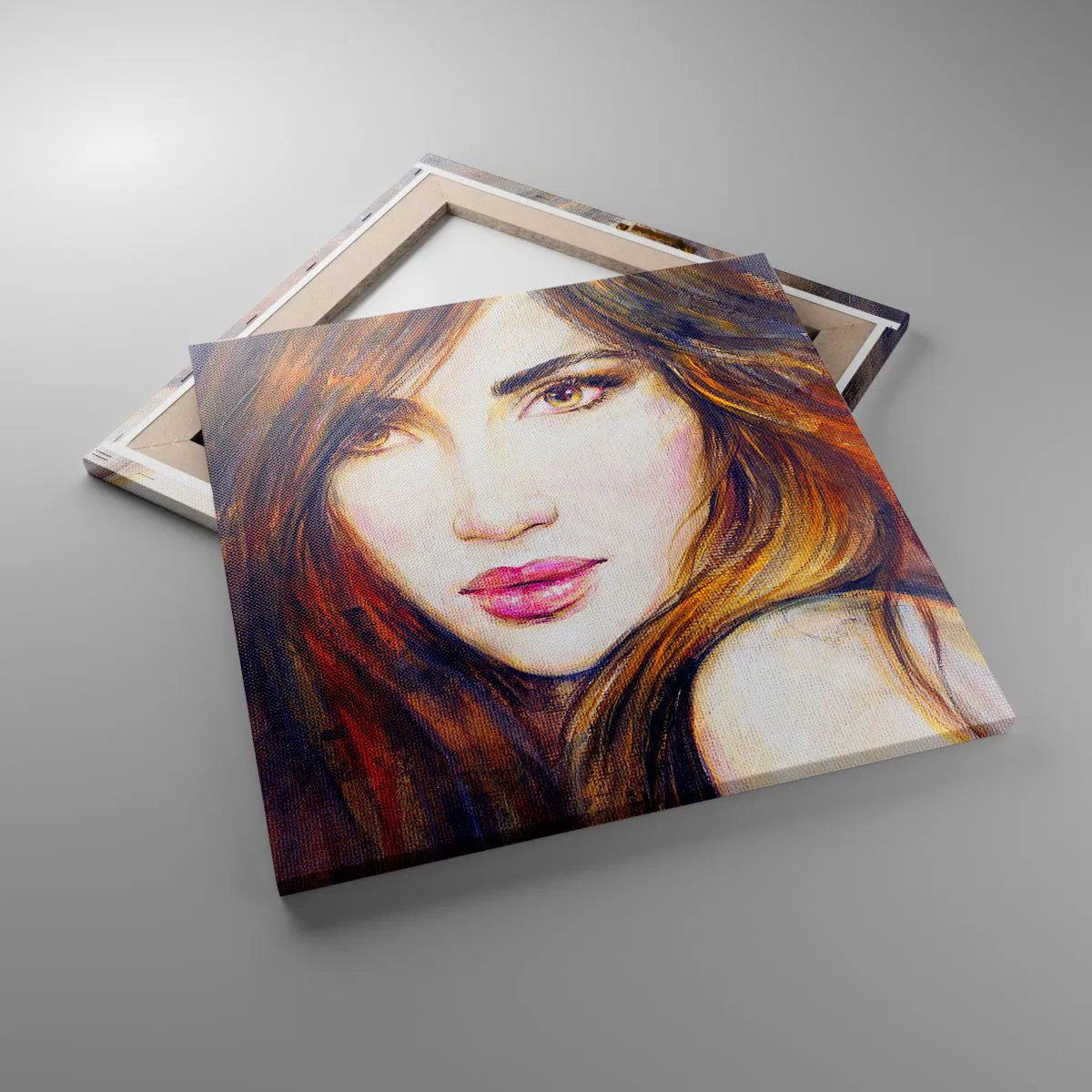 Lærredet er spændt op over rammen. Siderne og kanterne trykkes for at danne en fortsættelse af billedet. Maleriet er klar til at blive hængt op på væggen. Hvert produkt har en bøjle, der er fastgjort til rammen, og et samlesæt (skrue + dyvel).