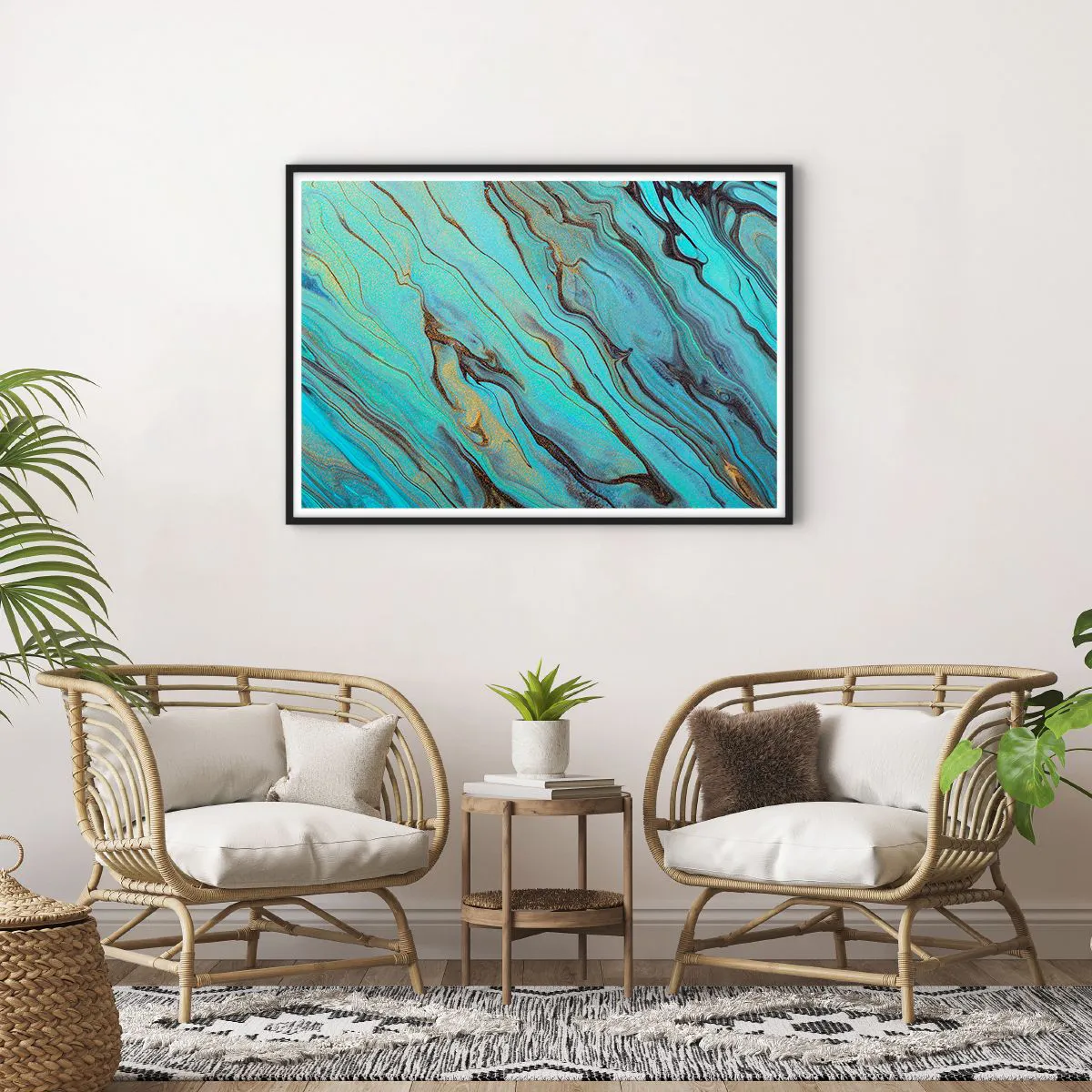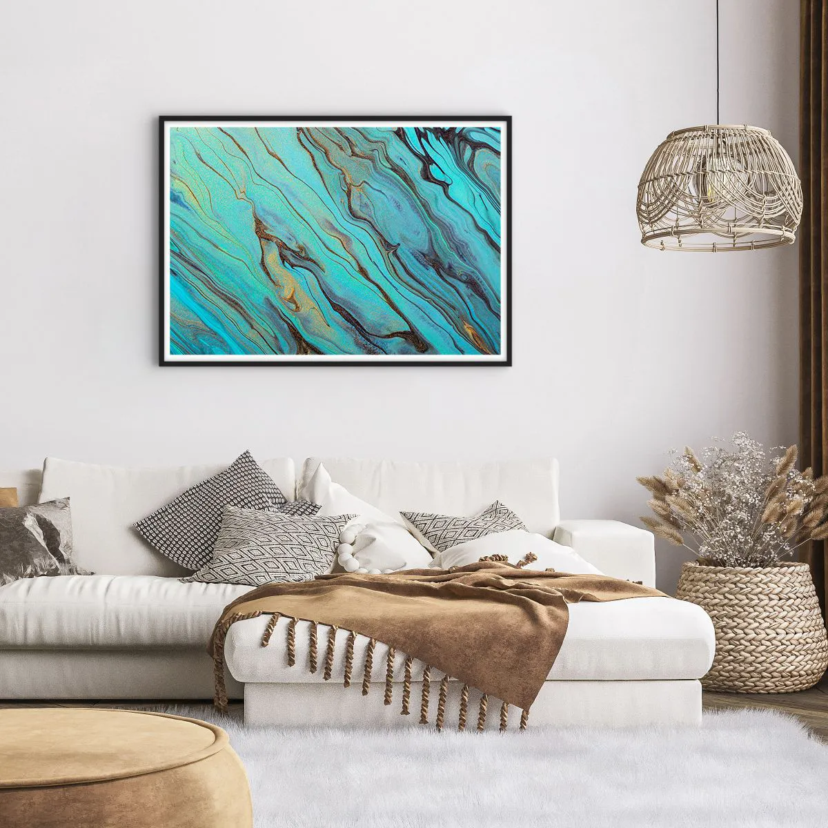 Plakat i sort ramme - Turkis tidevand - 100x70 cm