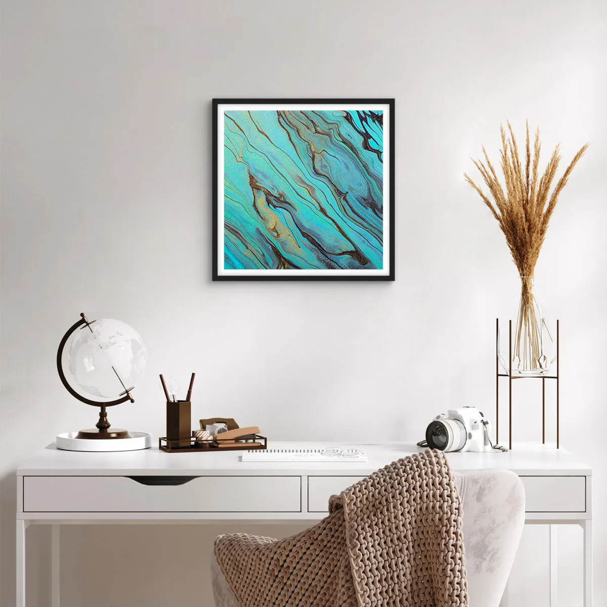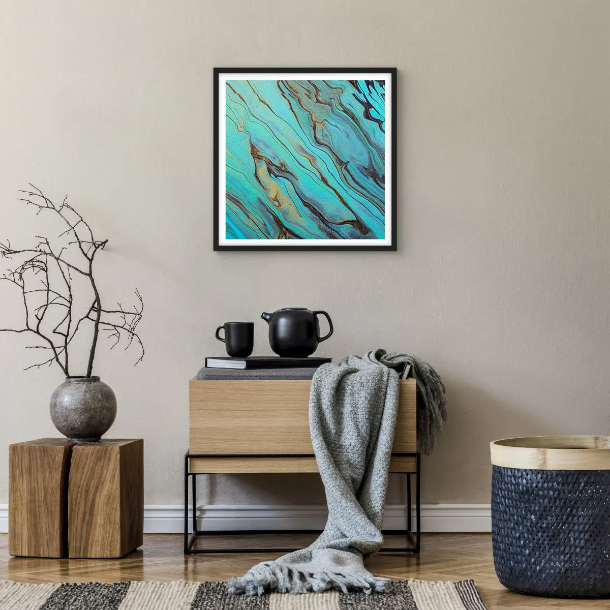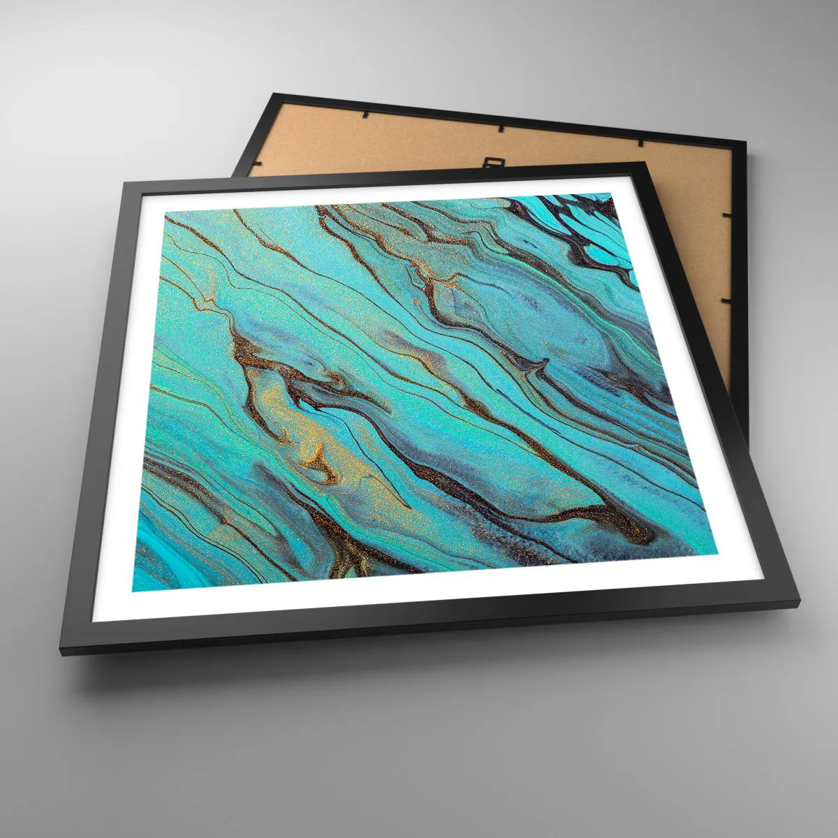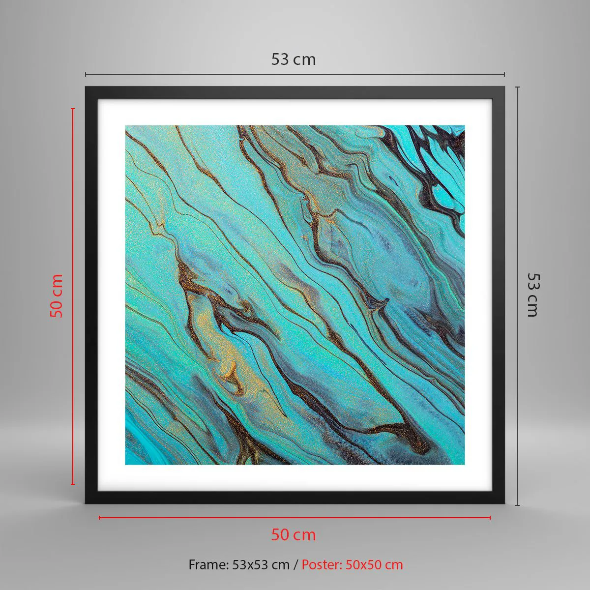 Plakat i sort ramme - Turkis tidevand - 50x50 cm