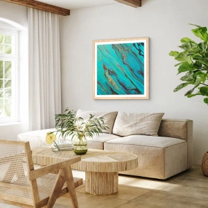 Plakat i ramme af lyst egetræ - Turkis tidevand - 50x70 cm