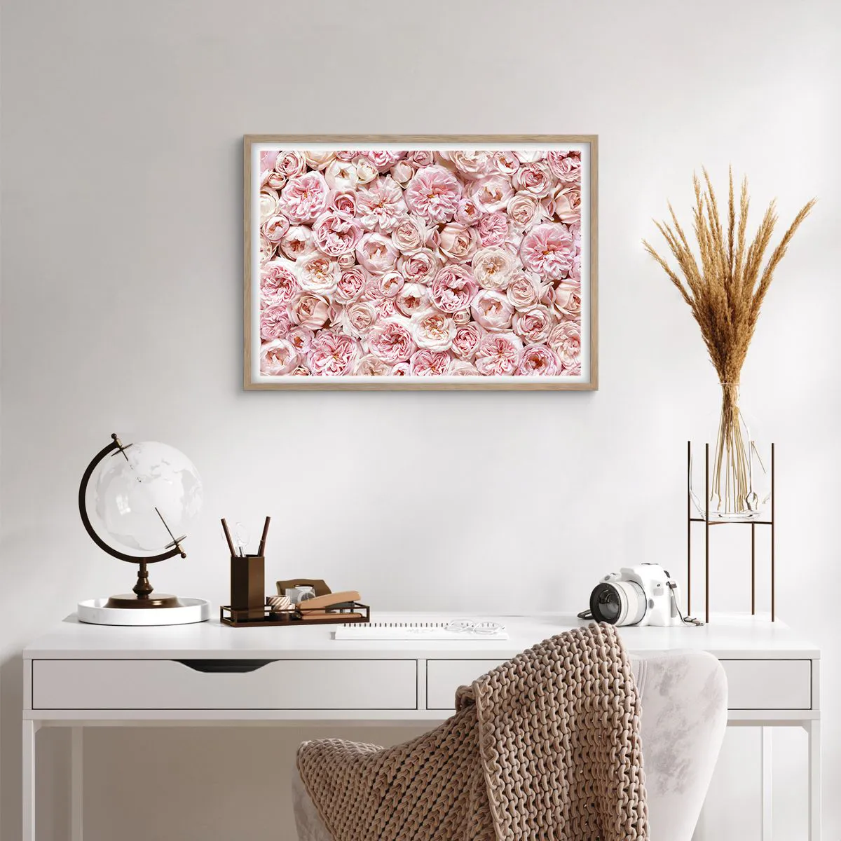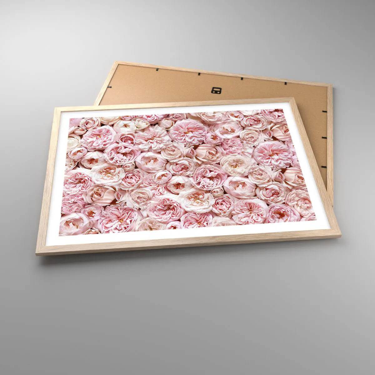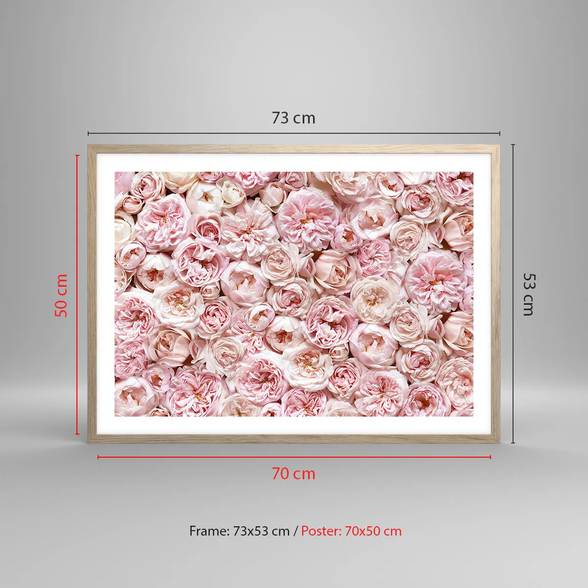 Plakat i ramme af lyst egetræ - Overstrøet med roser - 70x50 cm