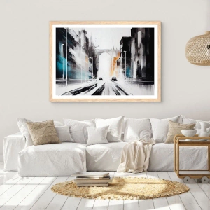 Plakat i ramme af lyst egetræ - Bystudie: arkitektur og bevægelse - 61x91 cm