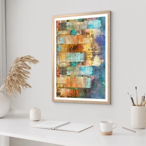 Plakat i ramme af lyst egetræ - Solrig metropol - 50x70 cm