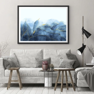Plakat i sort ramme - Blå i guld - 30x30 cm
