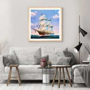 Plakat i ramme af lyst egetræ - Stolt med vinden - 40x40 cm
