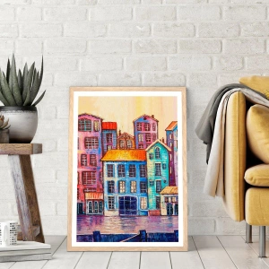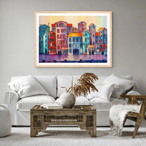 Plakat i ramme af lyst egetræ - En by som et eventyr - 61x91 cm
