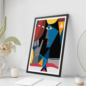 Plakat i sort ramme - Kubistisk samtale - 70x50 cm