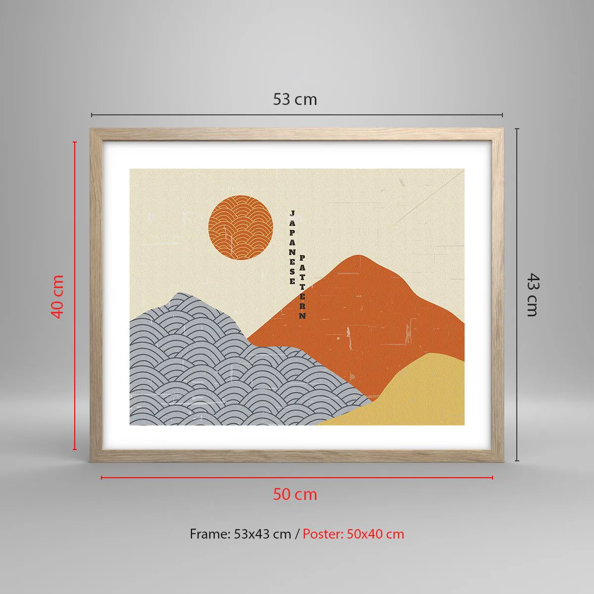 Plakat i ramme af lyst egetræ - I den japanske ånd - 50x40 cm