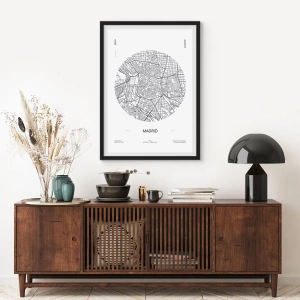• Kort, Madrid, Spanien, Sort og hvid, verdenskort, byer, rejser, typografi og citater, Til kontoret, til arbejdsværelset, til spisestuen, til hallen, til stuen, til soveværelset, Hvid, sort, sort og hvid, Vandret