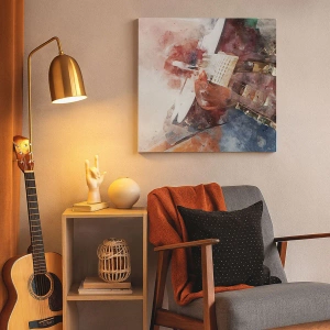 Lærredet er spændt op over rammen. Siderne og kanterne trykkes for at danne en fortsættelse af billedet. Maleriet er klar til at blive hængt op på væggen. Hvert produkt har en bøjle, der er fastgjort til rammen, og et samlesæt (skrue + dyvel).