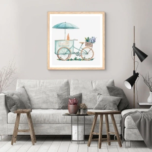 Plakat i ramme af lyst egetræ - Sødt minde om sommeren - 40x40 cm