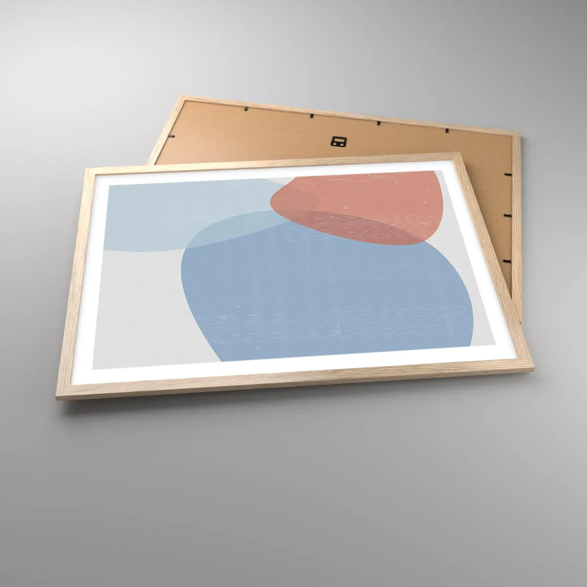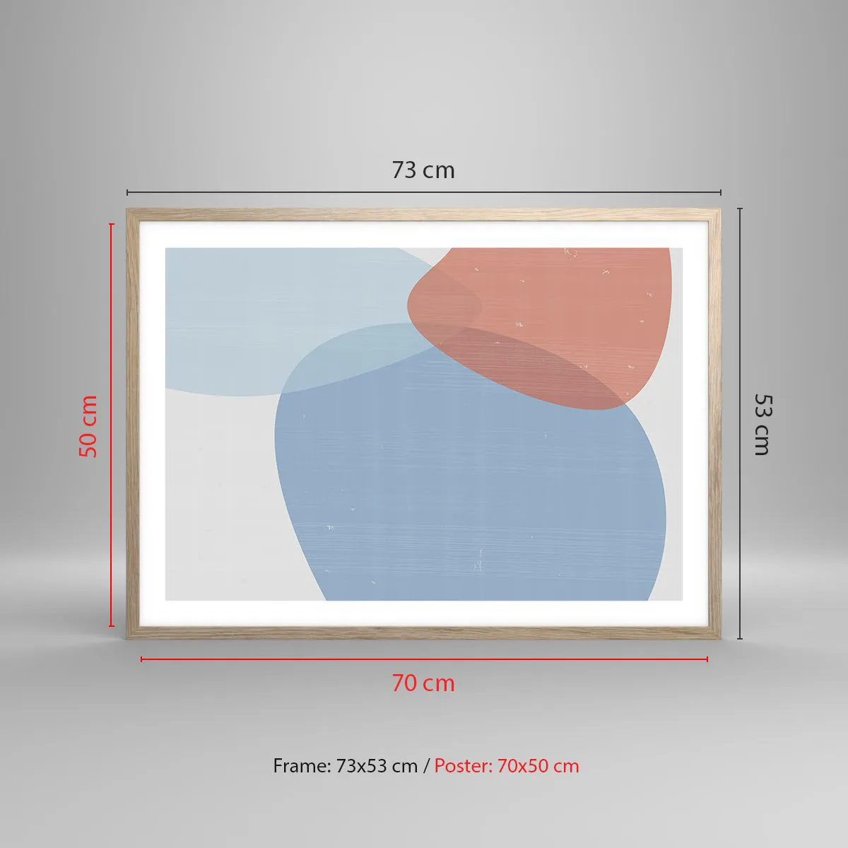 Plakat i ramme af lyst egetræ - Pastelfarvede relationer - 70x50 cm