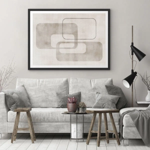 De afdæmpede farver og den delikate struktur gør plakaten til et perfekt supplement til skandinaviske, japanske eller industrielle interiører. Sammenflettede rektangulære former med afrundede kanter bringer ro og balance til rummet, hvilket gør det mere ordentligt og æstetisk tiltalende.