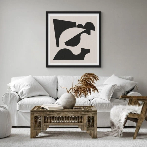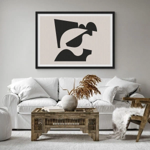 - Denne plakat har en abstrakt komposition af geometriske former i sort mod en beige baggrund. Dens minimalistiske og elegante design gør den til et perfekt supplement til moderne interiører. Den er fremstillet af materialer af høj kvalitet og indrammet ...