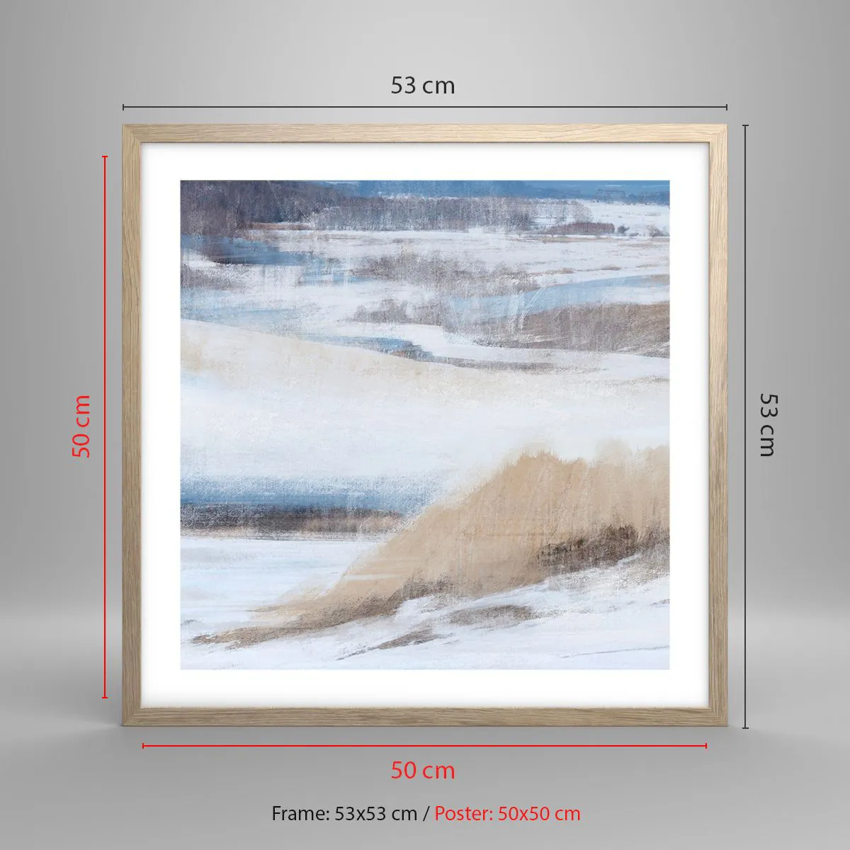 Plakat i ramme af lyst egetræ - Vinterkomposition - 50x50 cm