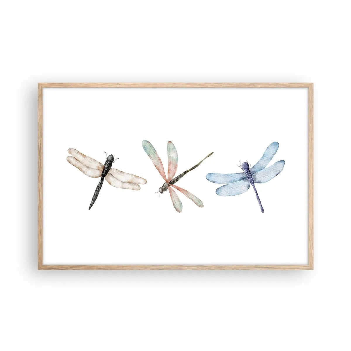 Plakat i ramme af lyst egetræ - Vægtløse guldsmede - 91x61 cm