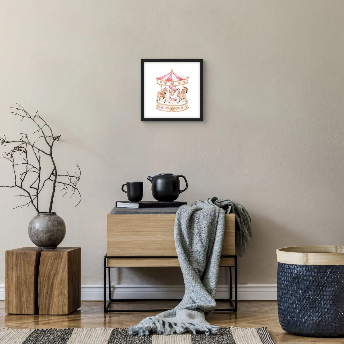 • Karrusel, Girly, Heste, Til børn, Pastel, Vintage og retro, Til børneværelset Hvid, Pink, Kvadratisk