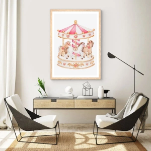 Plakat i ramme af lyst egetræ - Barndommens søde verden - 100x70 cm