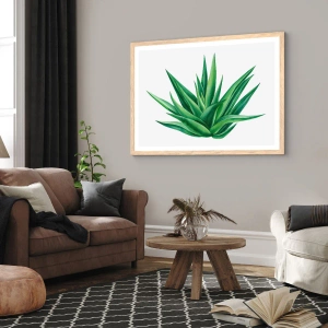 Plakat i ramme af lyst egetræ - Grøn - styrke - liv - 50x50 cm