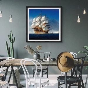 Plakat i sort ramme - Et sejlskib på åbent hav under fulde sejl i sollyset - 50x70cm - Den store herlighed! - Moderne vægdekoration til stue og soveværelse ARTTOR