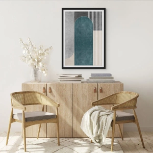 Takket være sin enkelhed og elegance passer denne plakat perfekt ind i moderne arrangementer. Den geometriske struktur og den harmoniske farvepalet gør billedet til en subtil, men udtryksfuld accent i ethvert rum. Dens stilfulde komposition understreger interiørets raffinerede karakter.