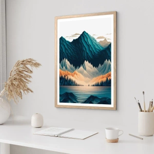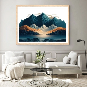 Plakat i ramme af lyst egetræ - Perfekt bjerglandskab - 70x100 cm
