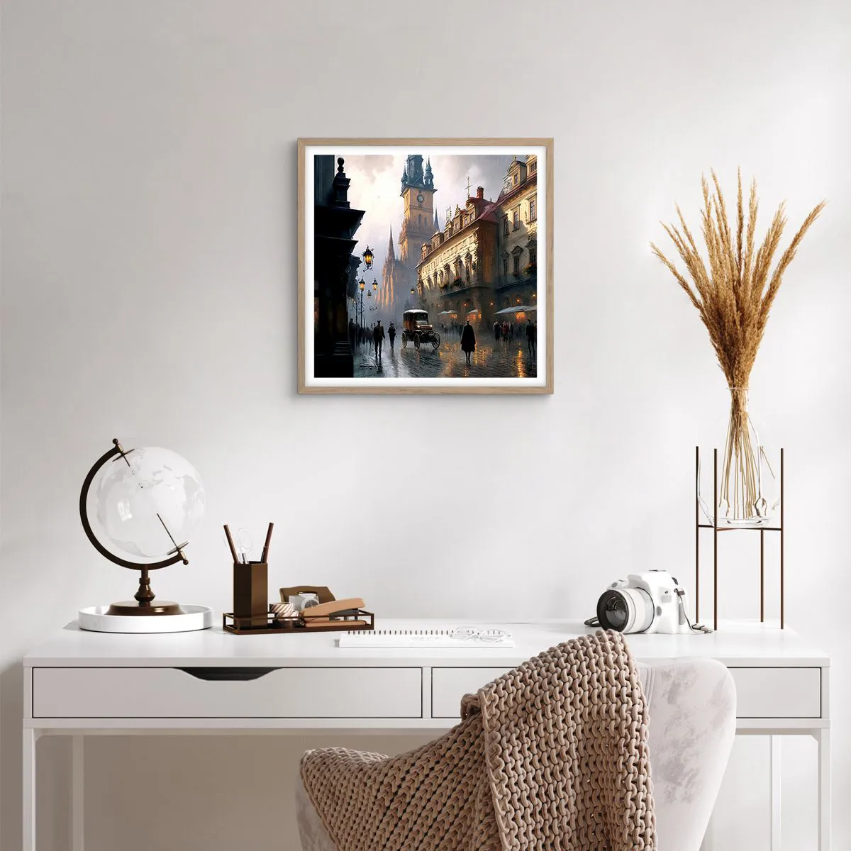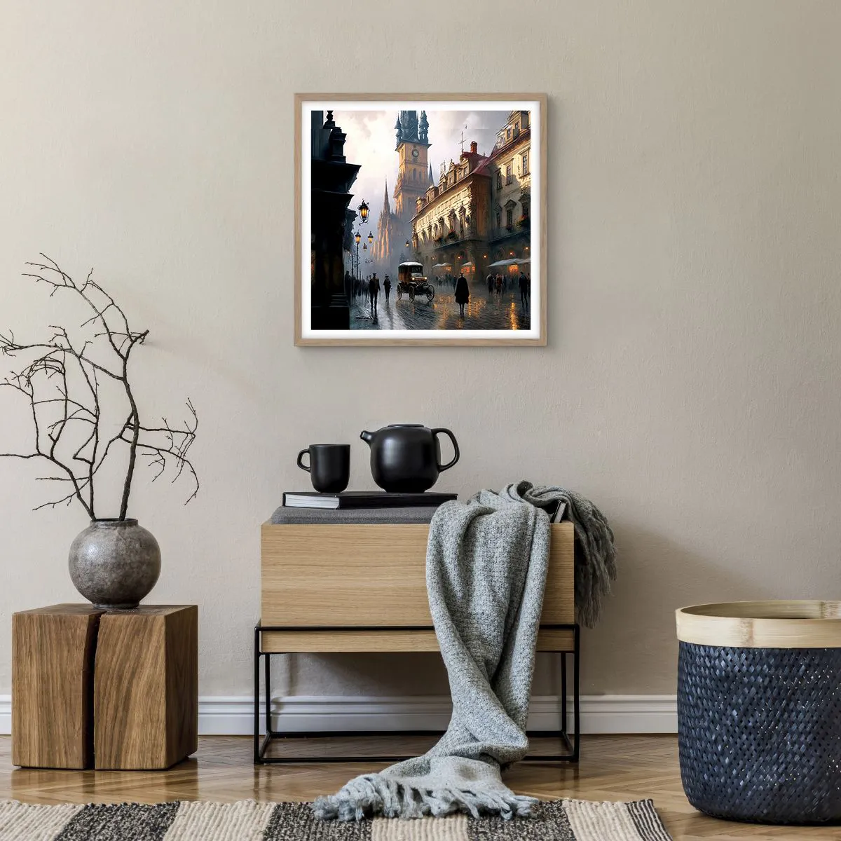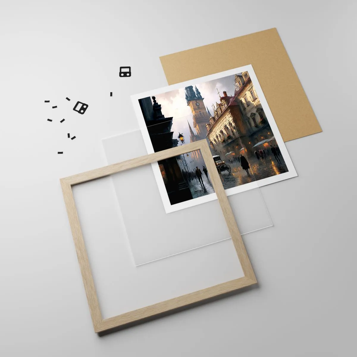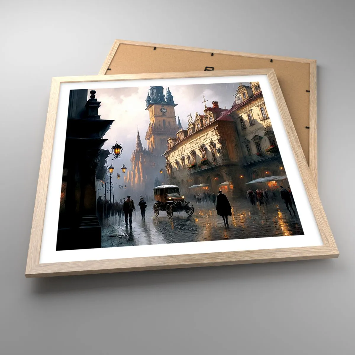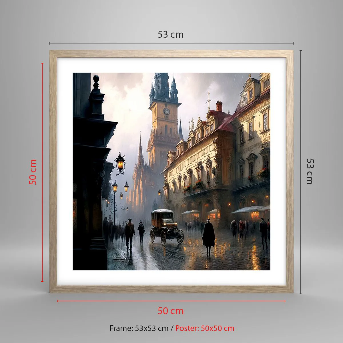 Plakat i ramme af lyst egetræ - Magien i en aften i Prag - 50x50 cm