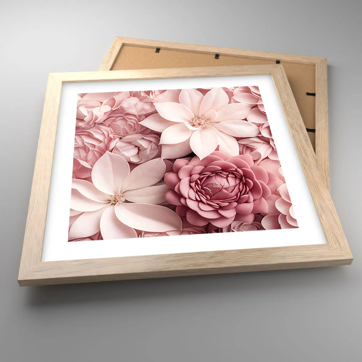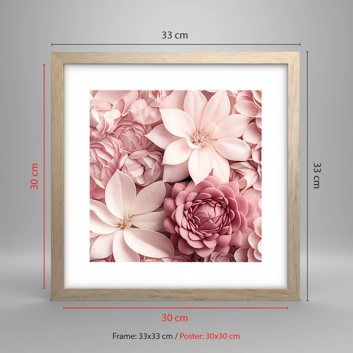 Plakat i ramme af lyst egetræ - I lyserøde kronblade - 30x30 cm