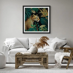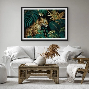 Plakat i sort ramme - Gylden leopard i den tropiske jungle - 50x70cm - Værten i junglen - Moderne vægdekoration til stue og soveværelse ARTTOR