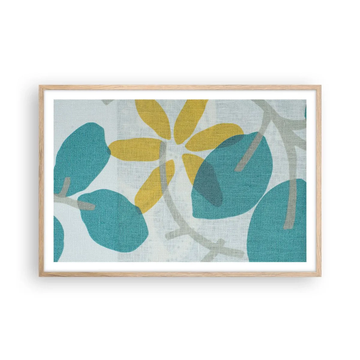 Plakat i ramme af lyst egetræ - Blandt azurblå blade - 91x61 cm