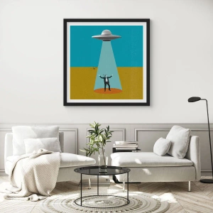 Plakat i sort ramme - Retro illustration af en UFO-bortførelse - 50x70cm - Et tæt møde - Moderne vægdekoration til stue og soveværelse ARTTOR