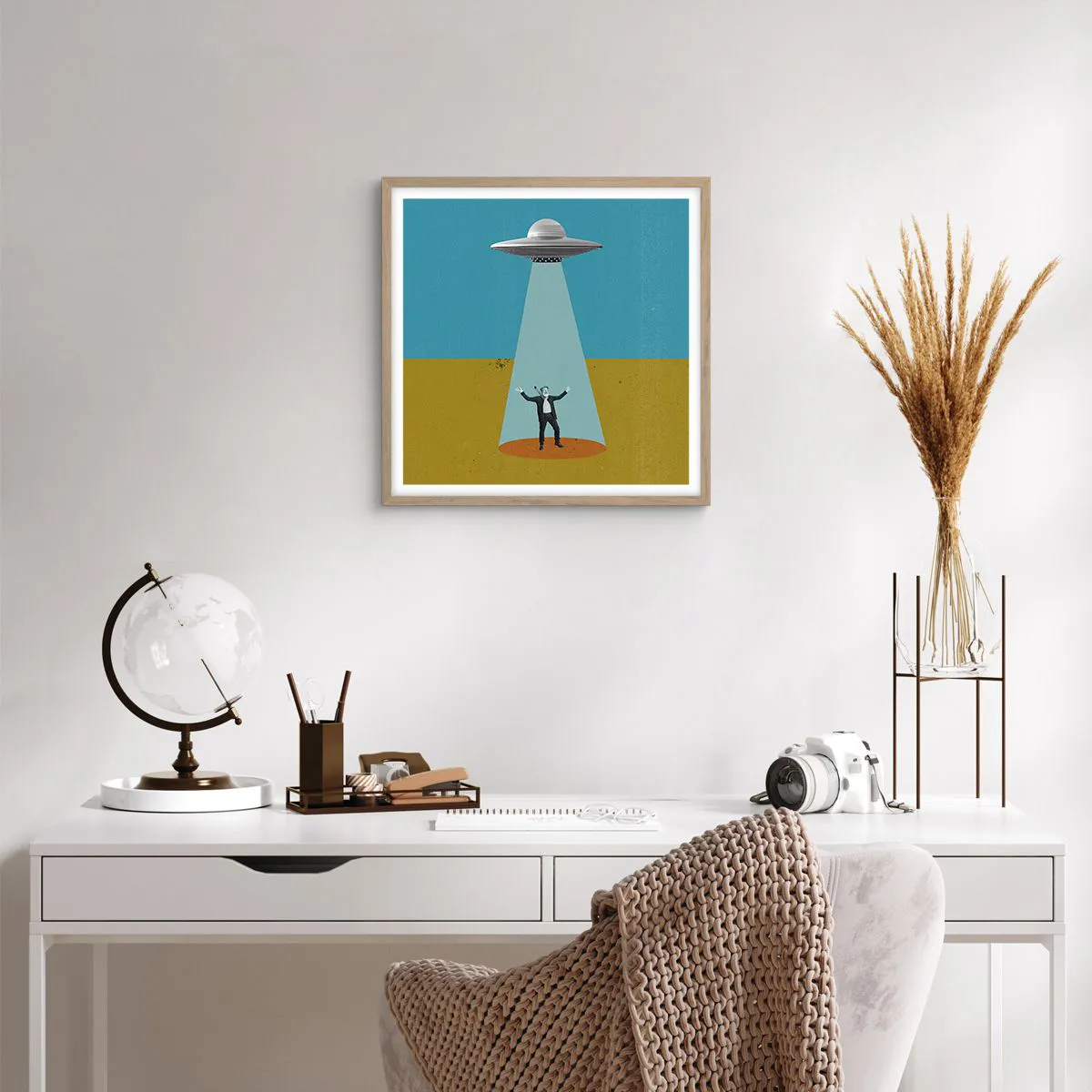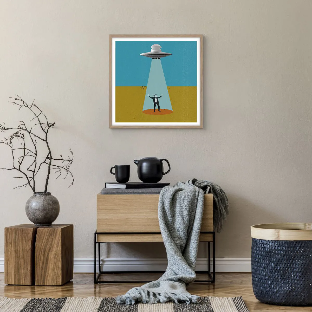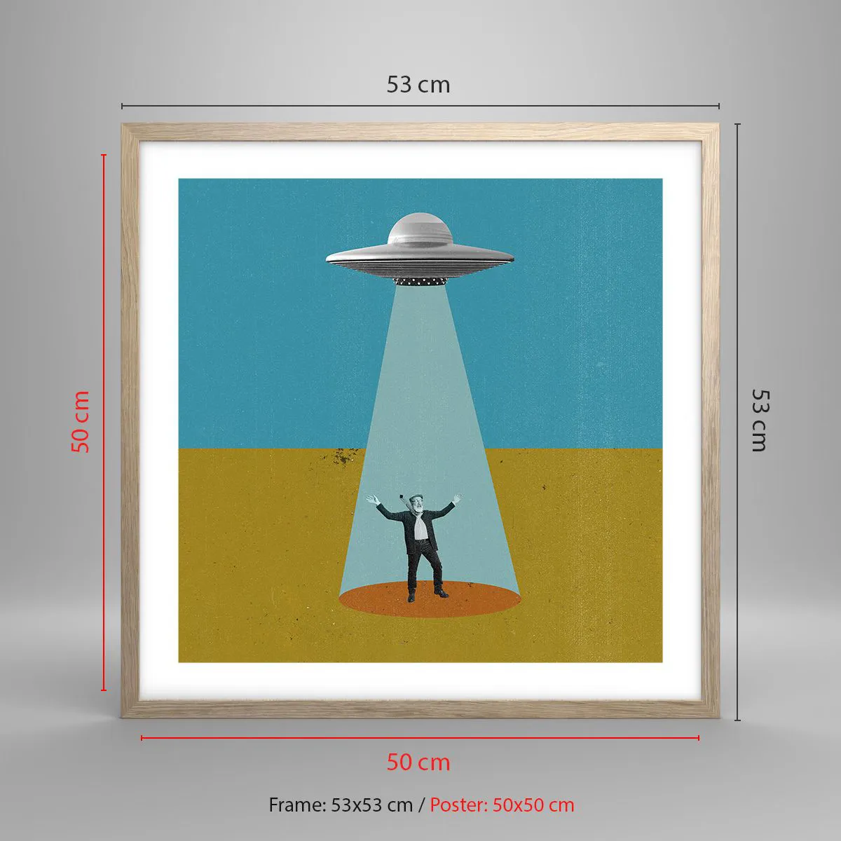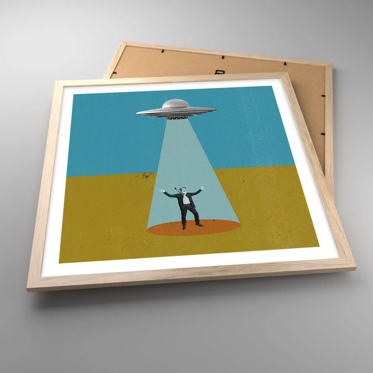 Plakat i ramme af lyst egetræ - Et tæt møde - 50x50 cm