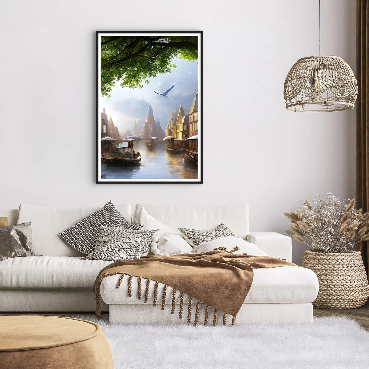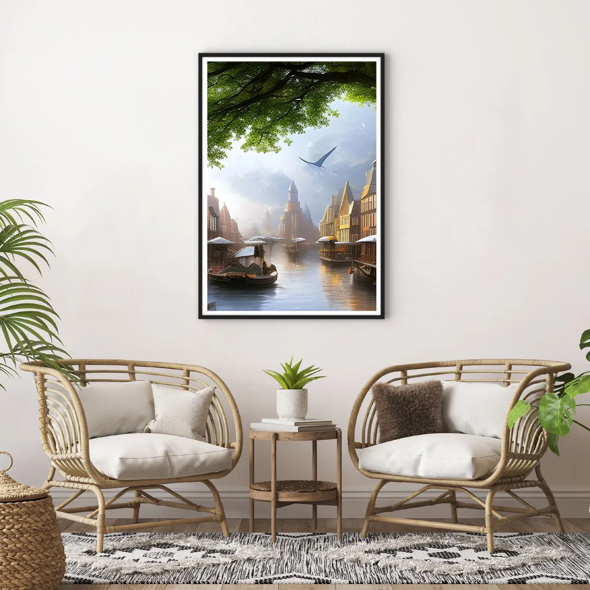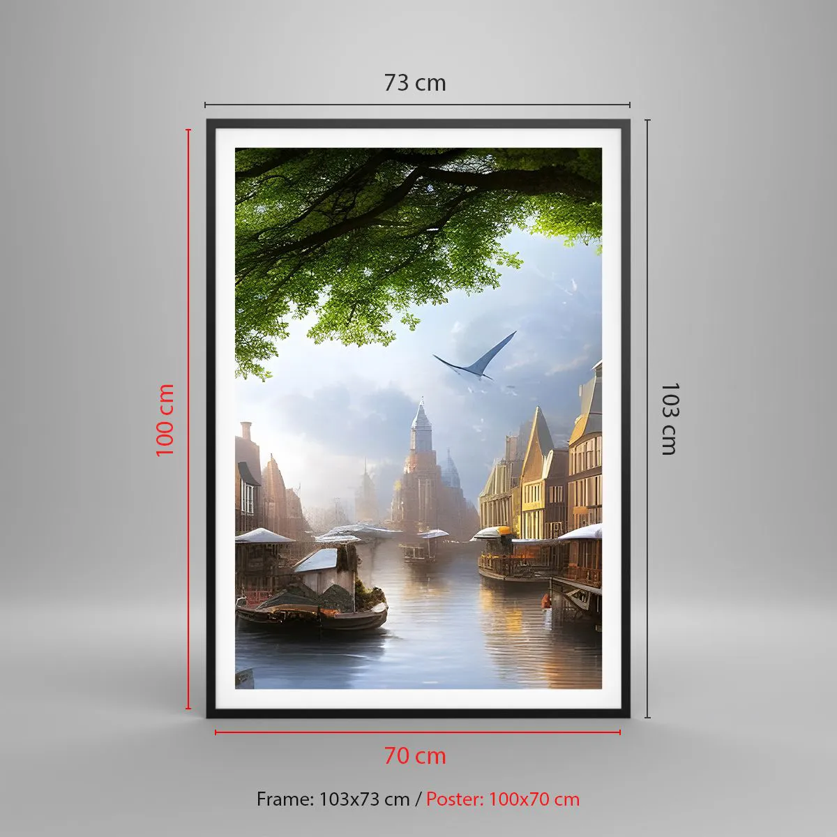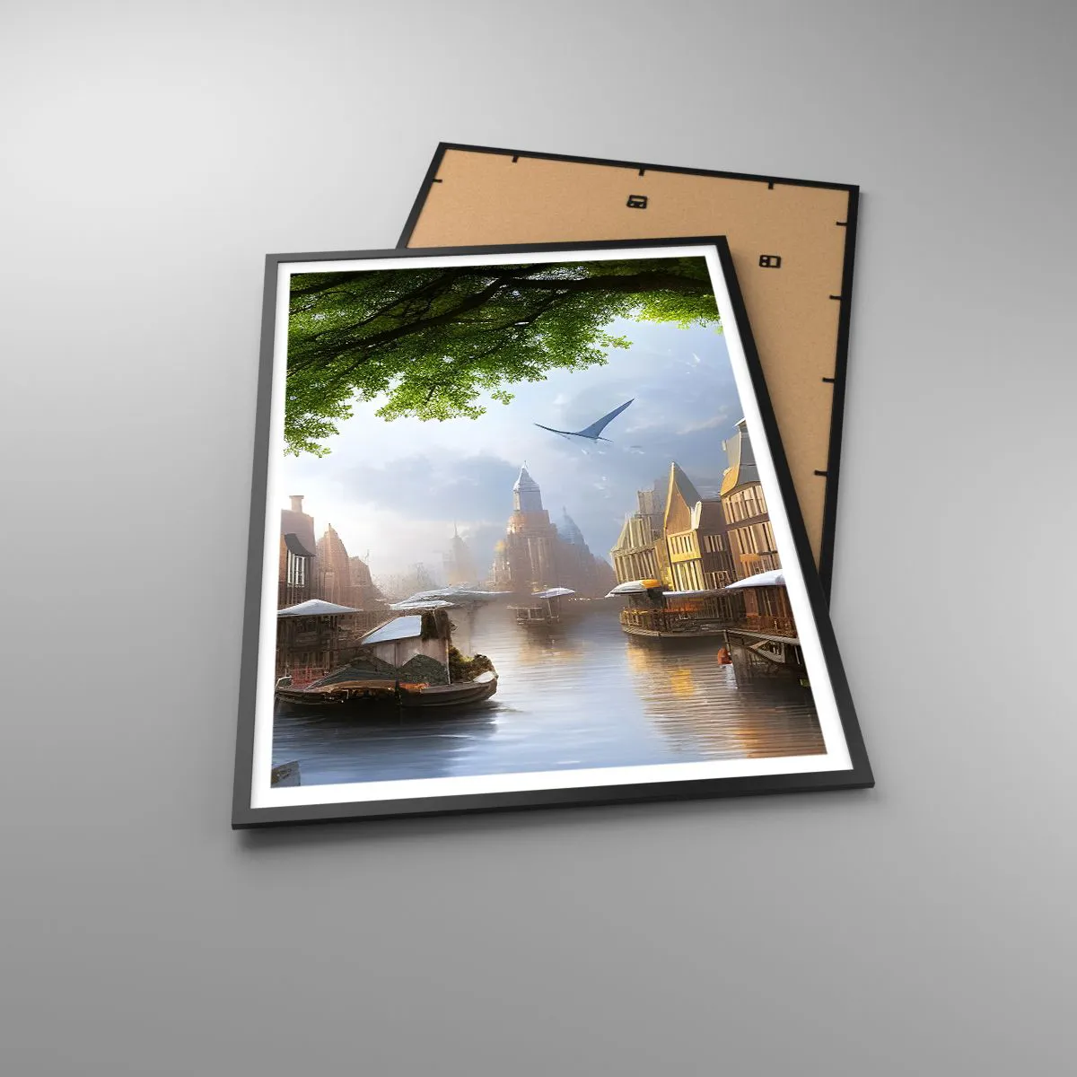 Plakat i sort ramme - Hollandsk bybillede - 70x100 cm