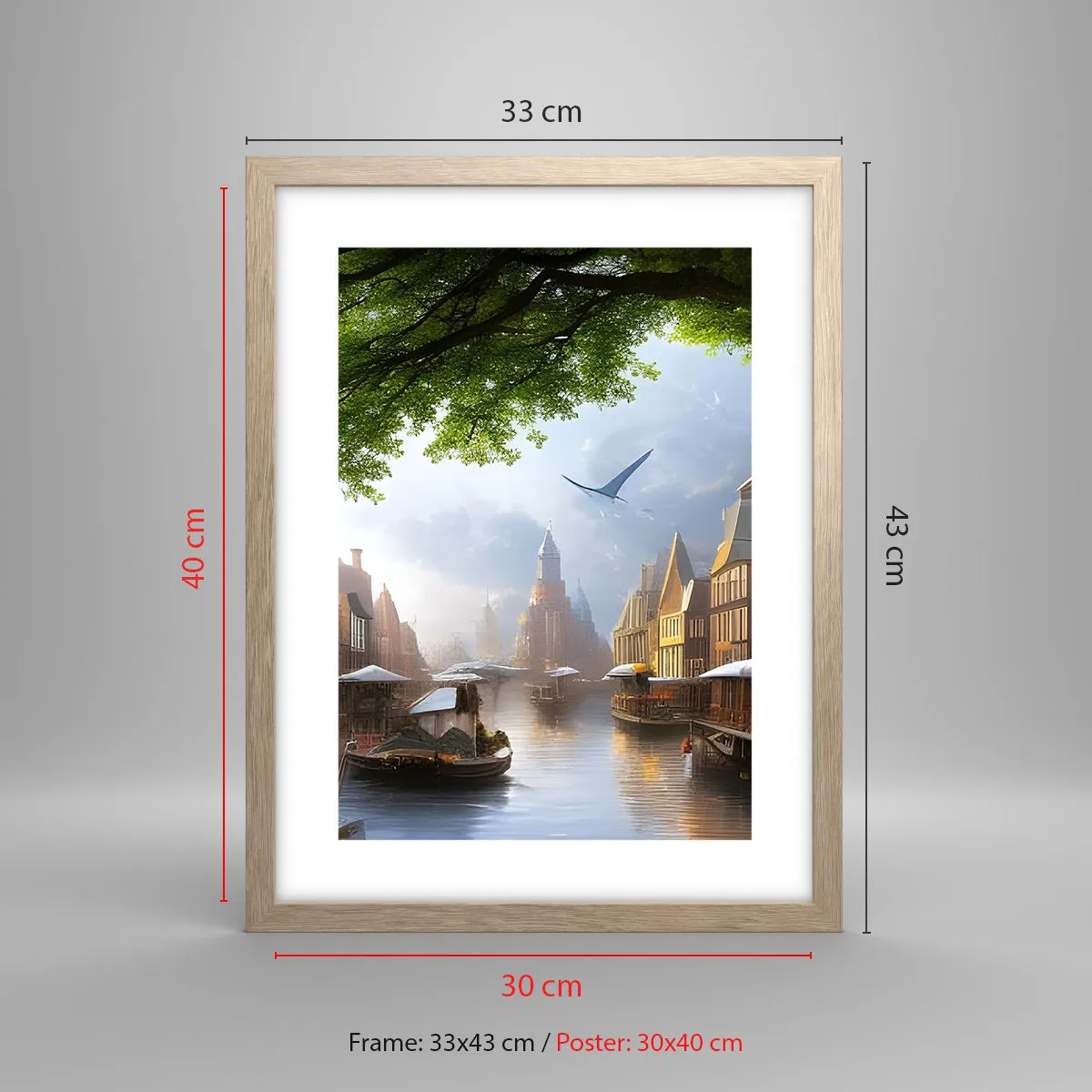 Plakat i ramme af lyst egetræ - Hollandsk bybillede - 30x40 cm