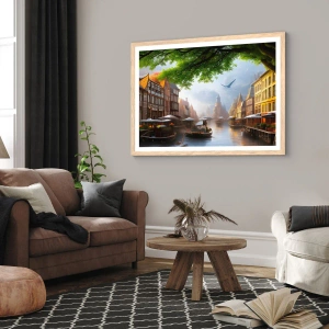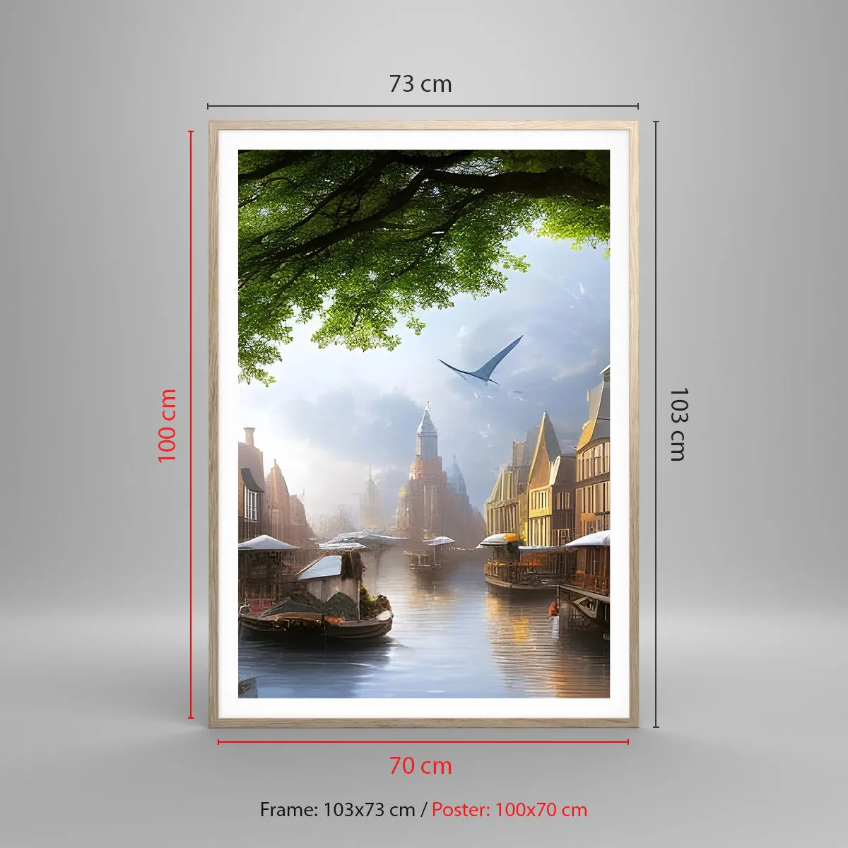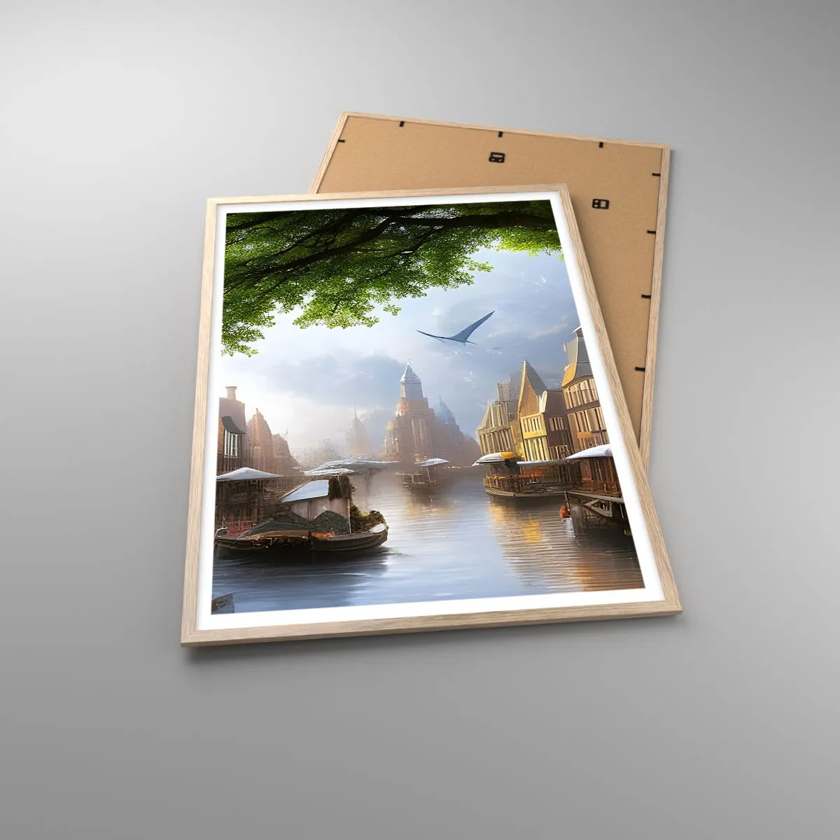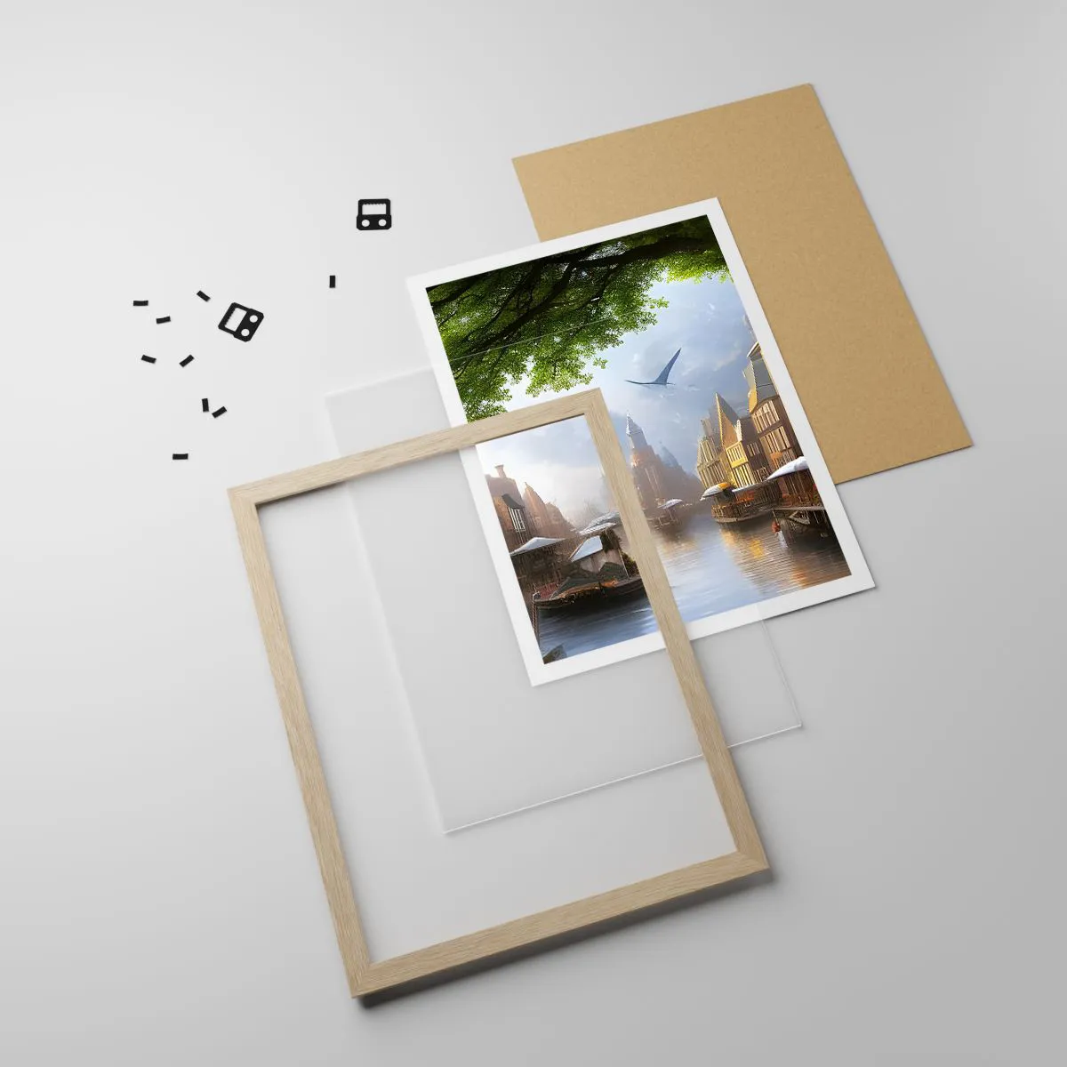 Plakat i ramme af lyst egetræ - Hollandsk bybillede - 70x100 cm