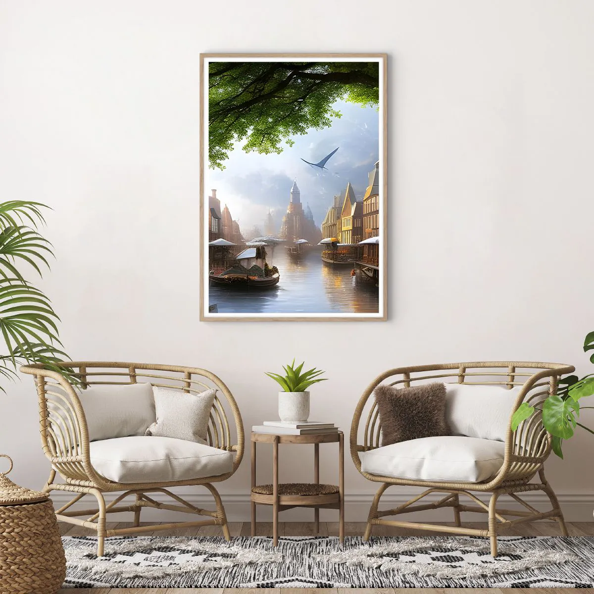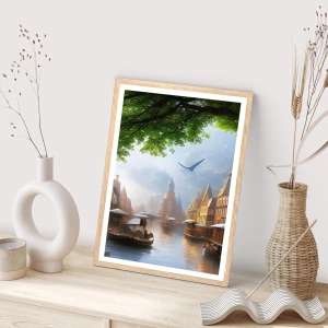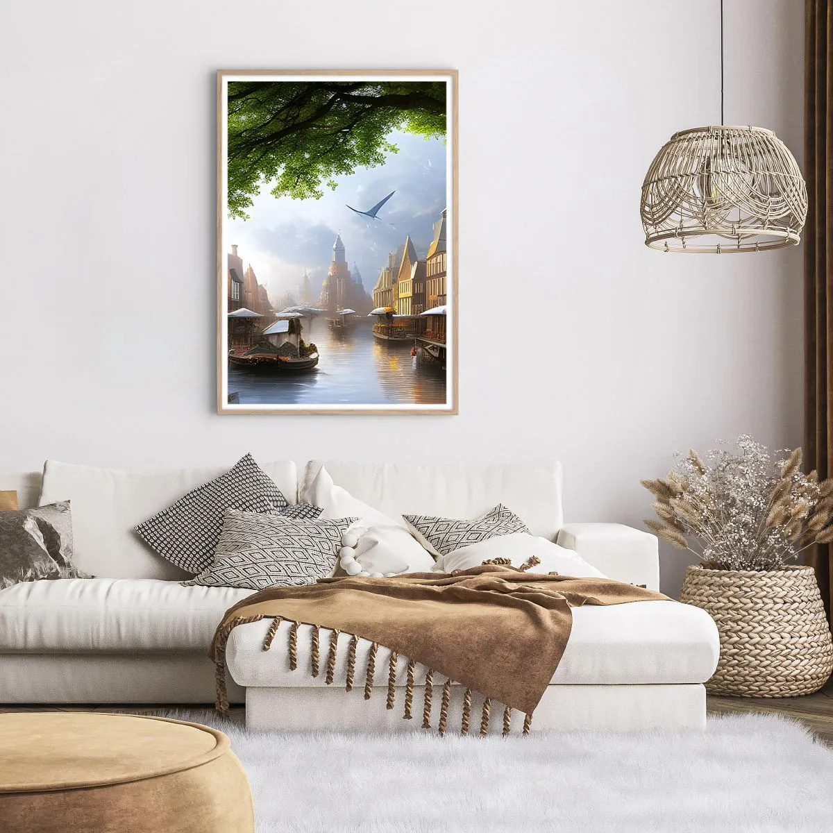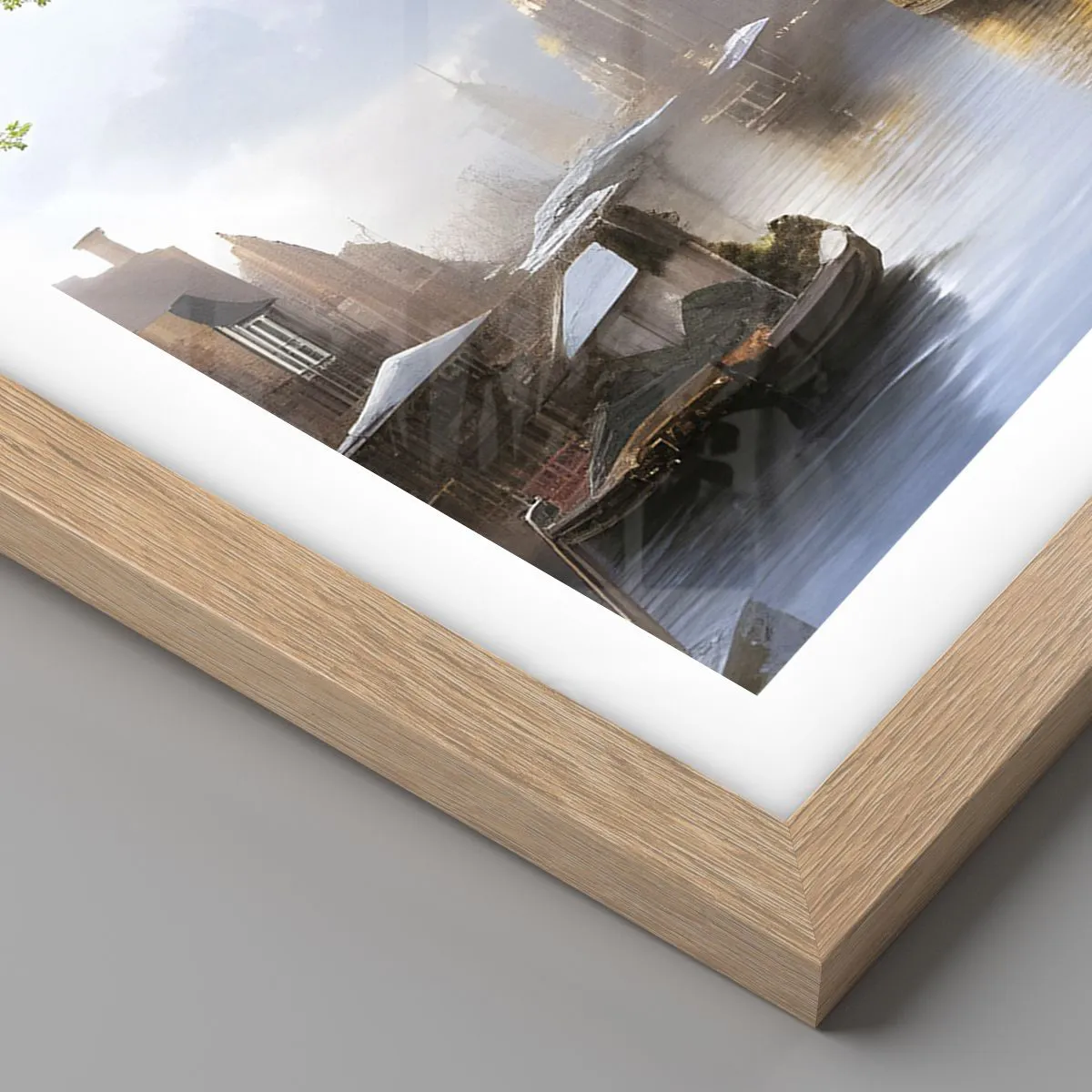 Plakat i ramme af lyst egetræ - Hollandsk bybillede - 70x100 cm
