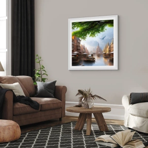 Plakat i hvid ramme - Hollandsk bybillede - 100x70 cm